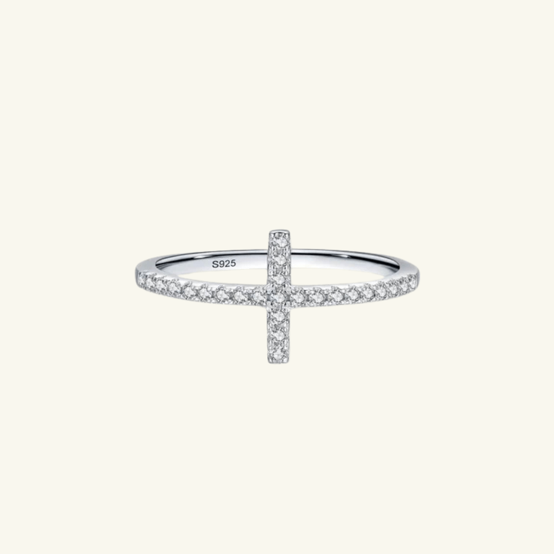 Sleek, simple, and a little unexpected. The Moissanite Cross Ring in 18k white gold vermeil reimagines a classic silhouette with sparkling moissanite stones—your new go-to for everyday shine.