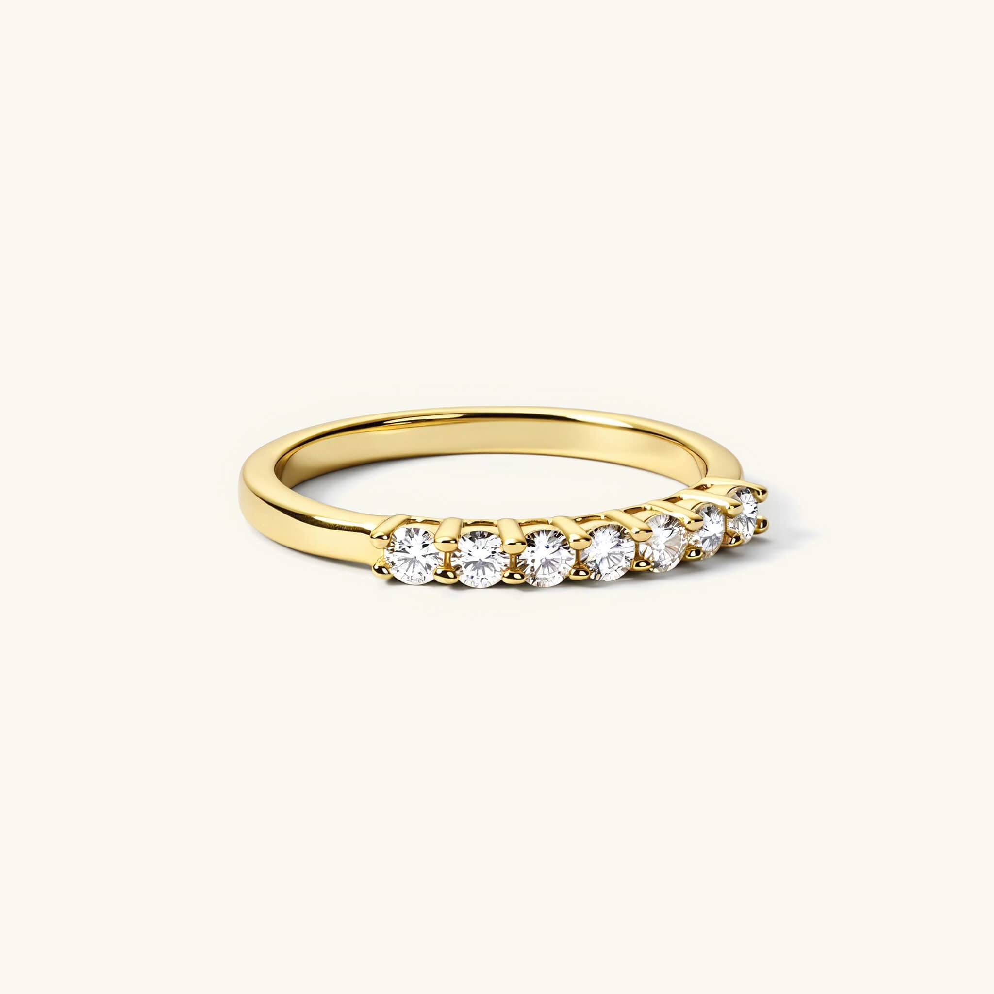 A timeless classic with a modern twist. Our 2.5mm Moissanite Half Eternity Ring is crafted in 18k gold vermeil and features a delicate row of dazzling moissanite stones—each boasting unmatched brilliance and fire.