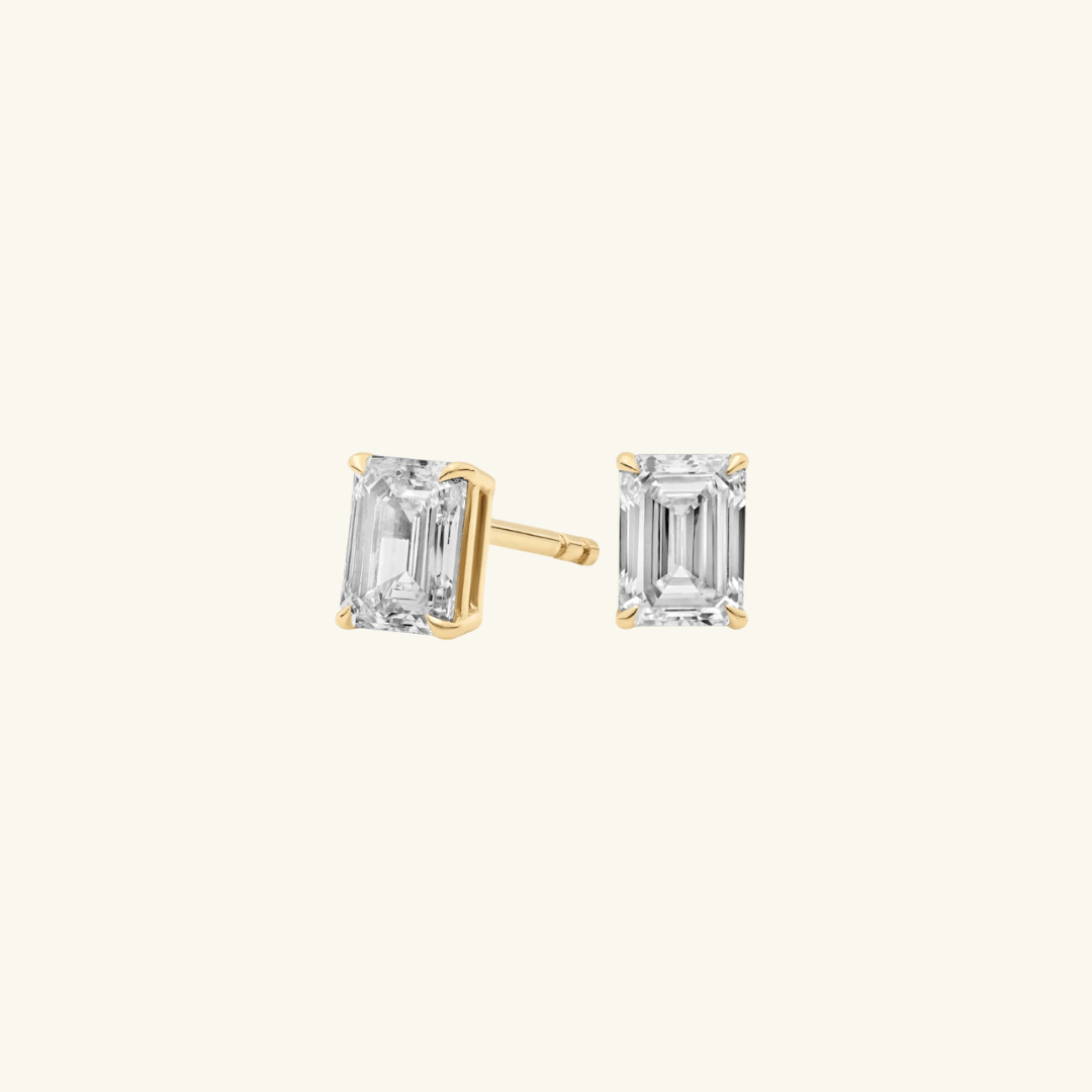 Geometry at its chicest. In 18k white gold vermeil, emerald-cut moissanite catches the light with crisp edges and modern brilliance.